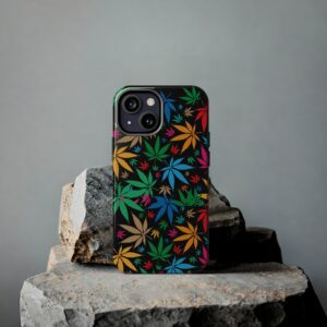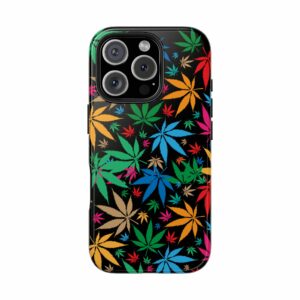This phone case is perfect for anyone who loves to show off their unique style while keeping their phone safe and secure. Whether you’re a cannabis enthusiast or just appreciate a bold graphic, this Colorful Cannabis Leafs Tough Phone Case is sure to impress.